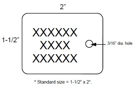 Twinco Stainless Steel Flat Tags are made from 0.036” thick stainless steel and have a 3/16” diameter hole for attachments. The letters are engraved into the tag.